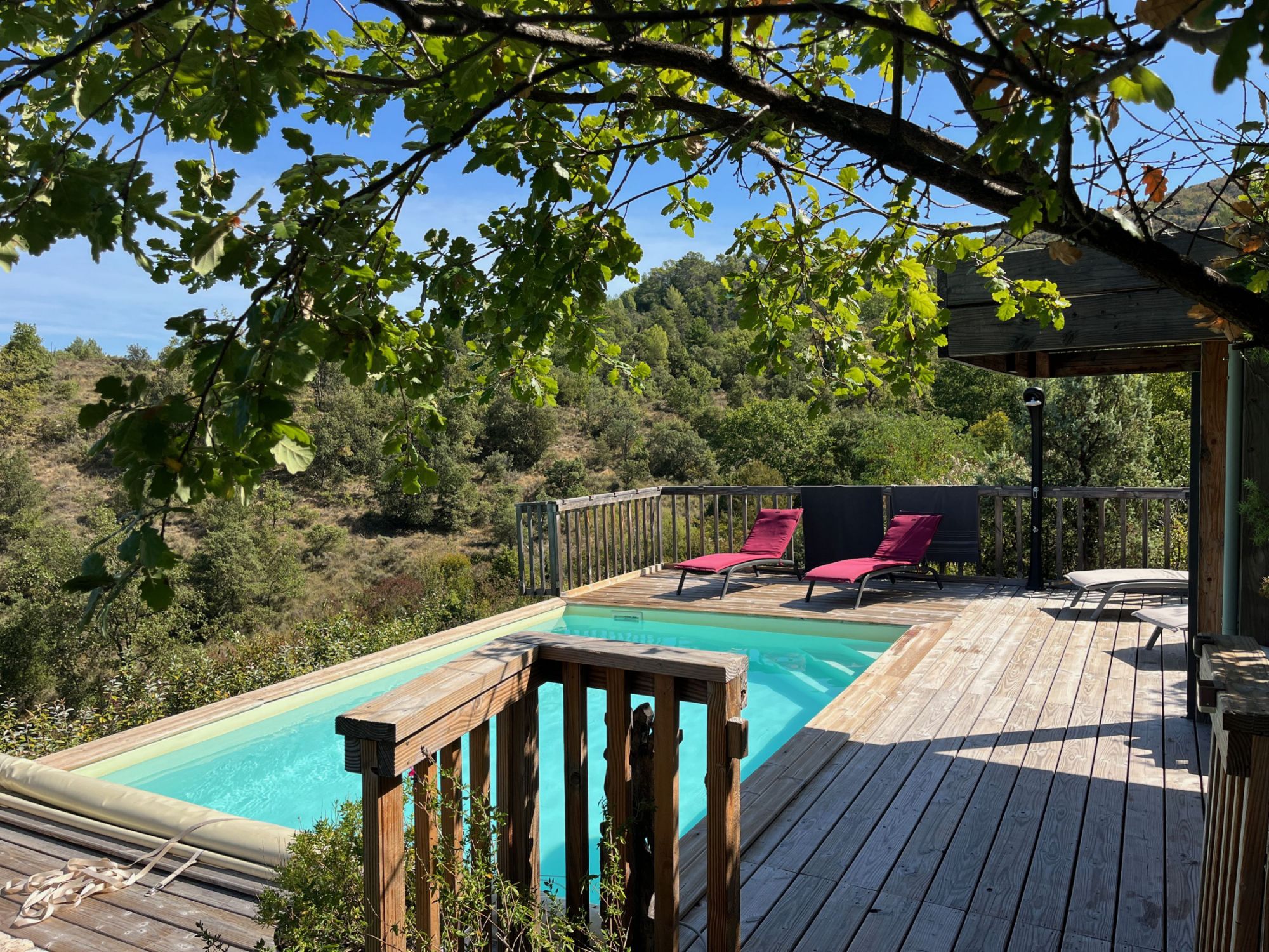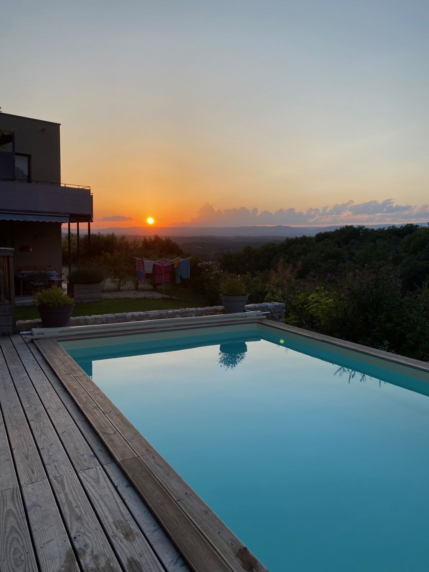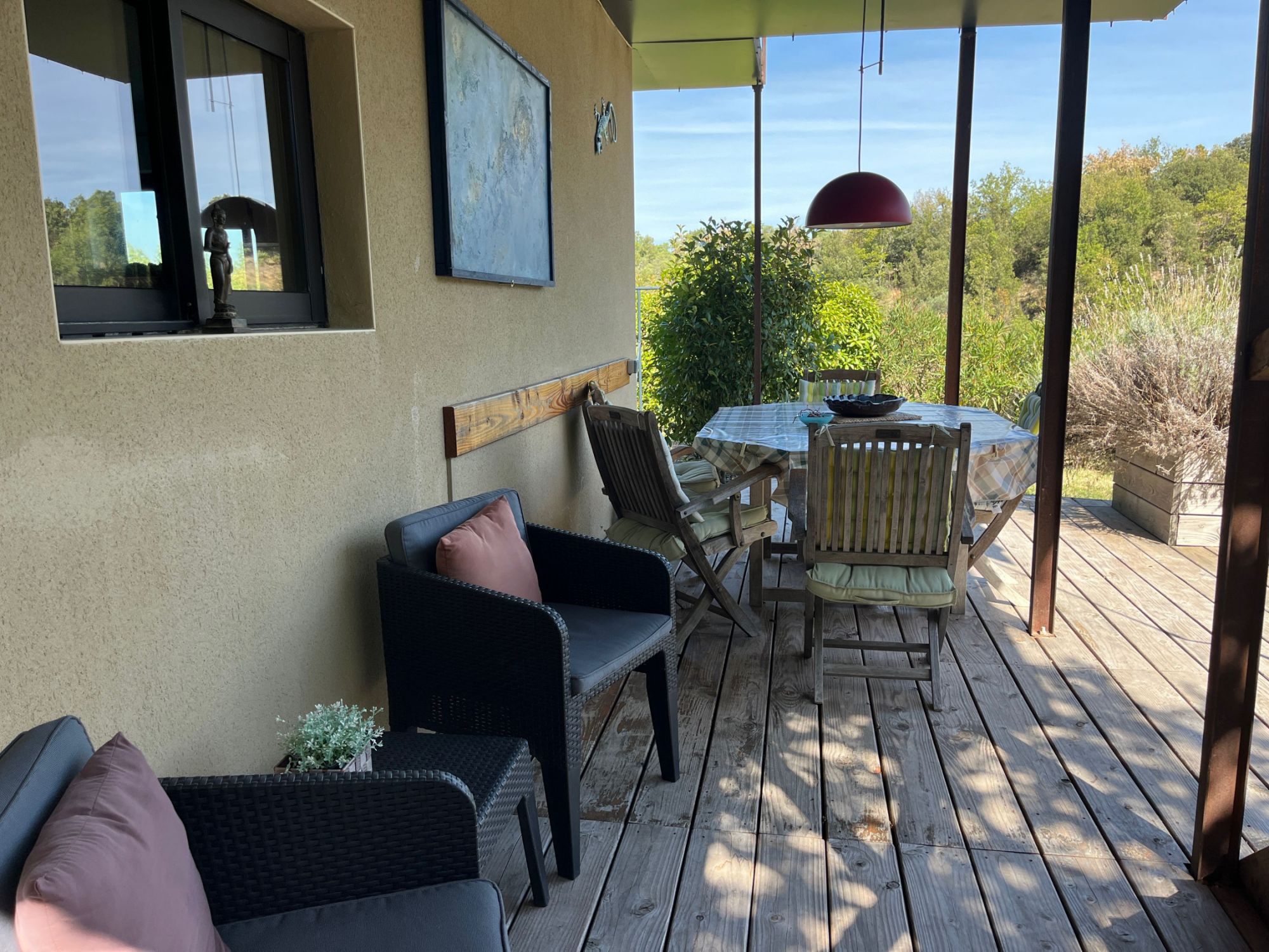 From this large sun terrace (with full privacy) you have a phenomenal view over the valley with the mountains of the Cevennes on the horizon.