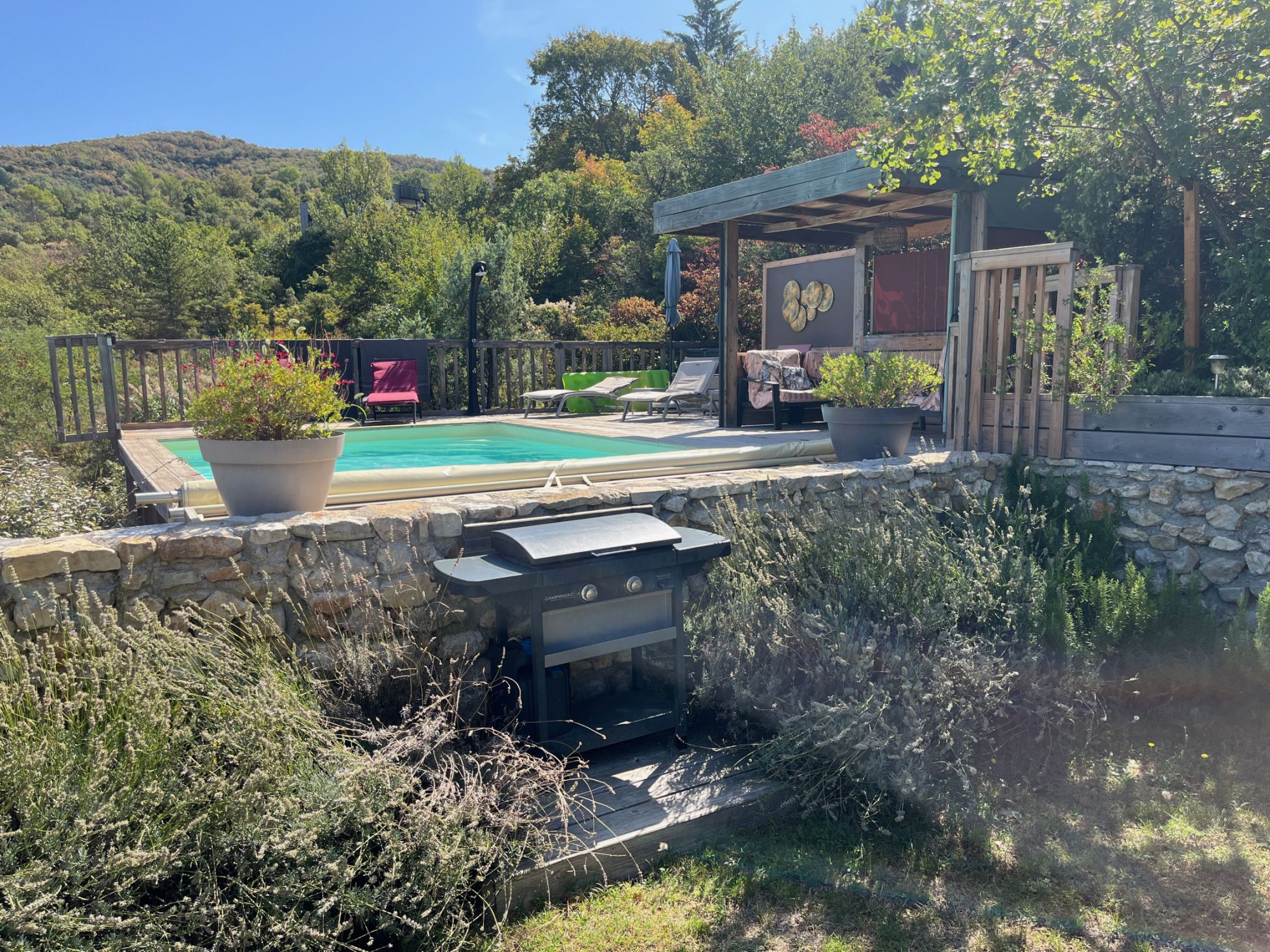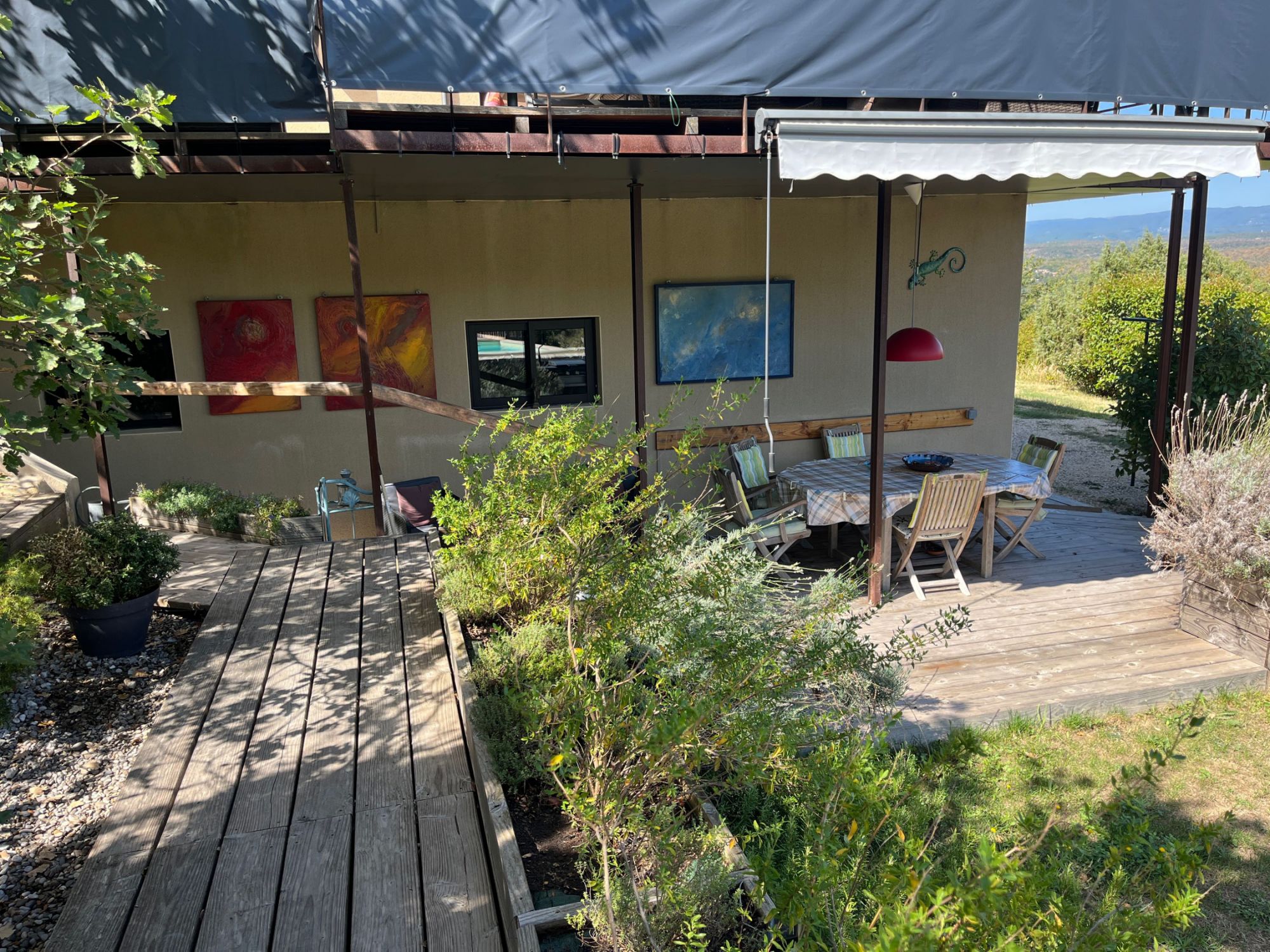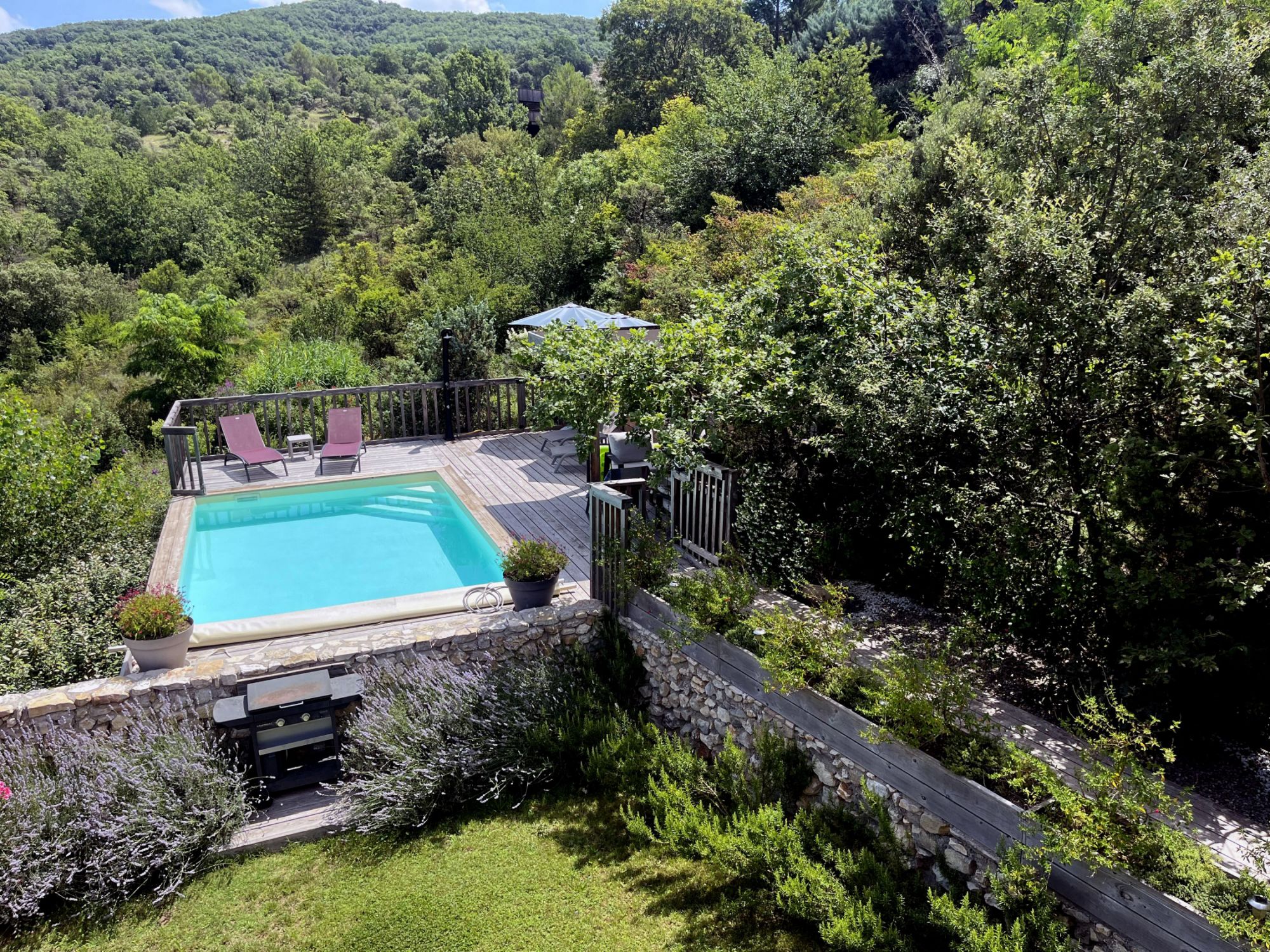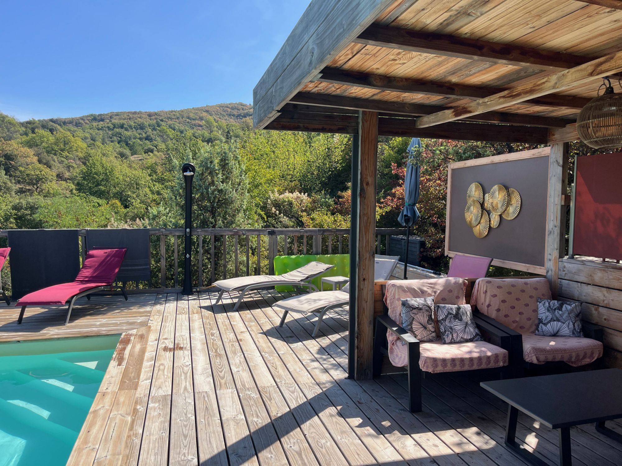 From this large sun terrace (with full privacy) you have a phenomenal view over the valley with the mountains of the Cevennes on the horizon.