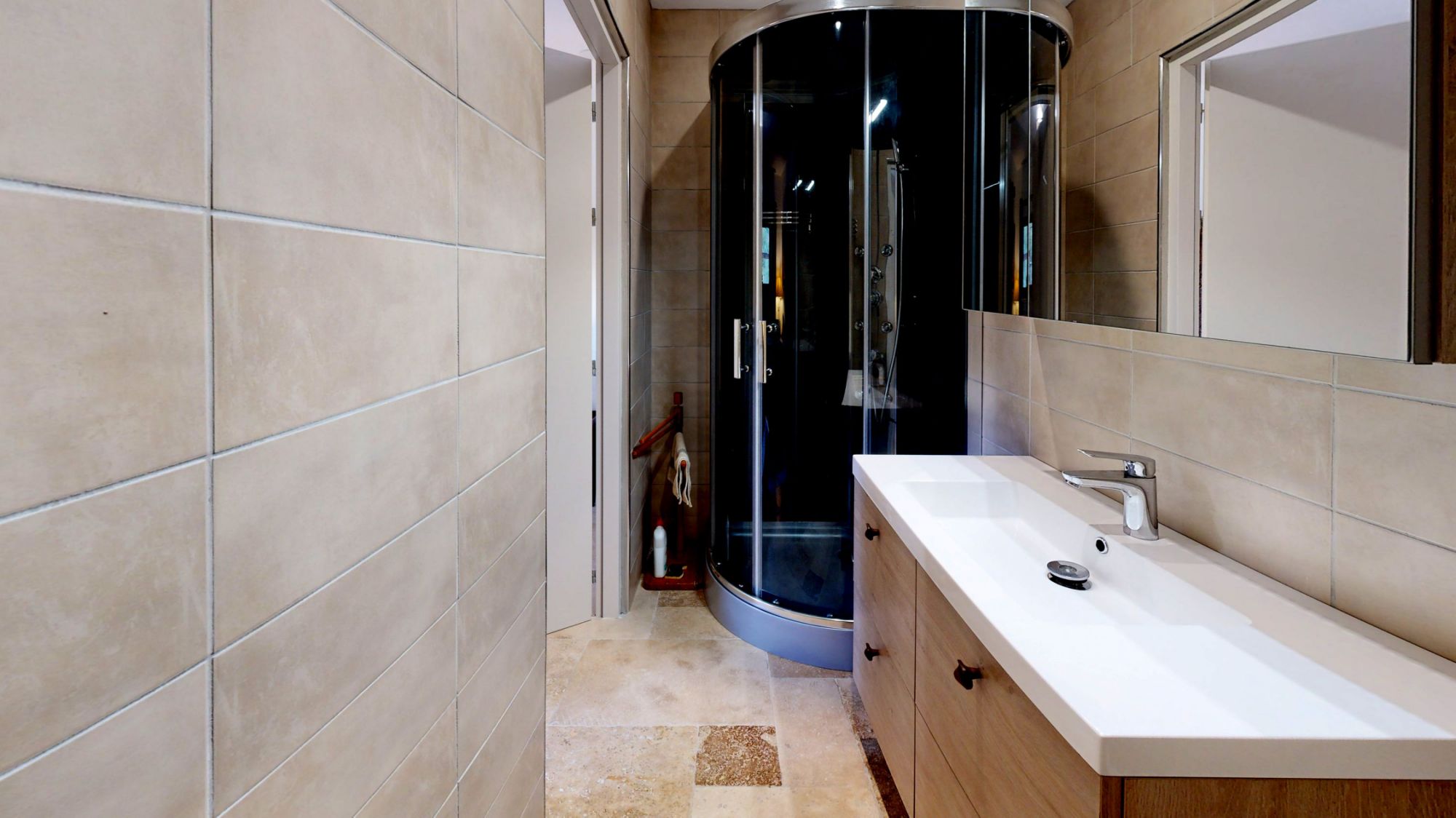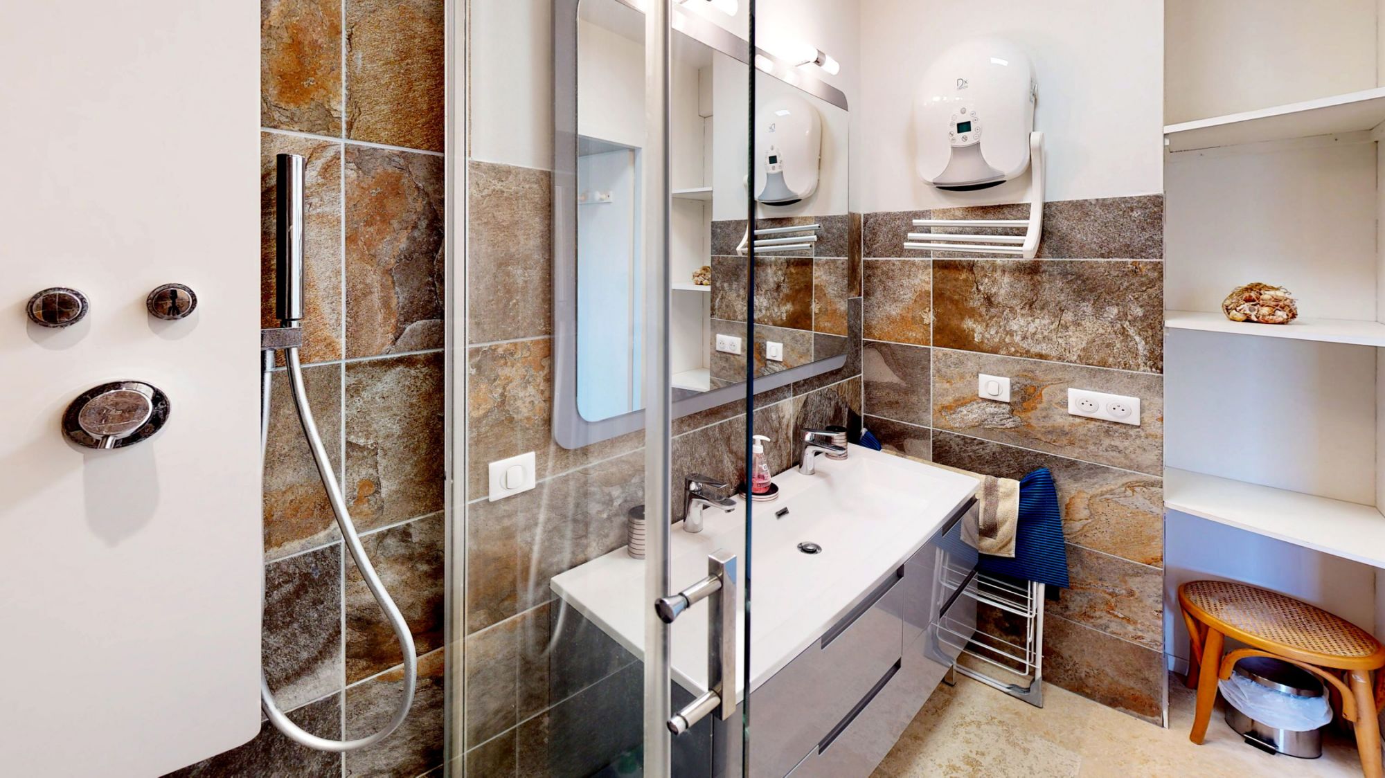On the vast upper sun terrace (40 m2) there is a swimming pool and a covered summer lounging area.